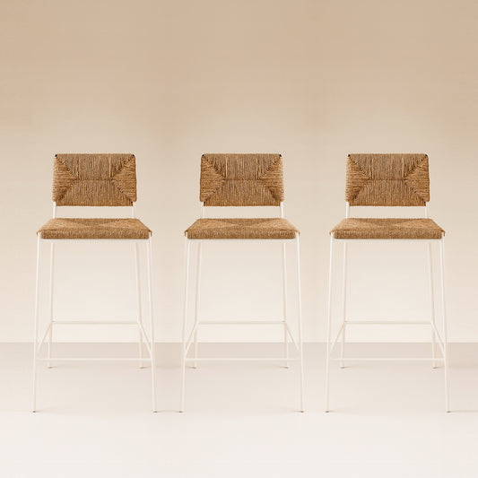 Set de 3 tabourets de comptoir 'Campagne' blanc en pailles tressées