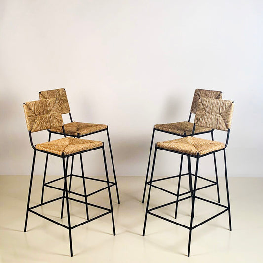 Set de 4 tabourets de comptoir 'Campagne' noire en paille de seigle